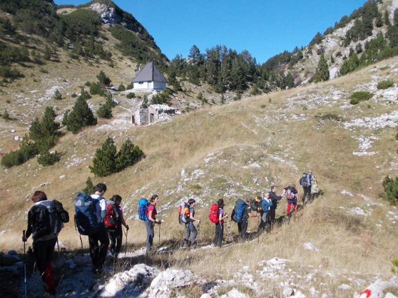 Za nepuna tri sata svi smo stigli do planinarske kuće sa transportnim ruksacima i opremom za spavanje. Planinarsku kuću su obnovili planinari svojim volonterskim radom i sakupljenim prilozima. Kuća je stalno otvorena bez domaćina, ali je potrebno najaviti dolazak. Može se prespavati sa vrećama i podloškama a kapacitet je oko 20 mesta. Nakon pauze krenusmo ka Prenju, Zelenoj glavi i Otišu. Vreme, samo kako se moglo poželeti, sunčano bez vetra i bez ijednog oblačka. Vetar nas je dočekao na prevoju izmeđo Zelene glave i Otiša. Od prevoja je staza strma sve do glavnog grebena.