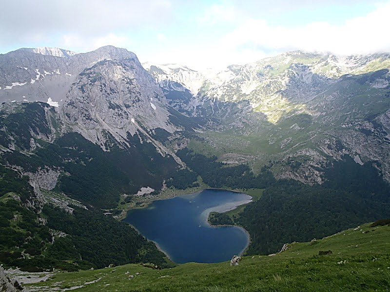| Nedelja 26. jun 2011. - na uspon na najviši vrh BiH krenuli smo već u 06.00. Povratak je bio predviđen za isti dan, tako da je trebalo sve na vreme odraditi. Jutro je bilo maglovito, ali bez kiše i toplo. Staza prvo vodi kroz šumu, da bi se zatim izašlo na proplanak odakle je predivan pogled na Trnovačko jezero, jezero u obliku srca. Tako se lepo i jasno vidi. Tu pravimo i prve fotografije. | |||
