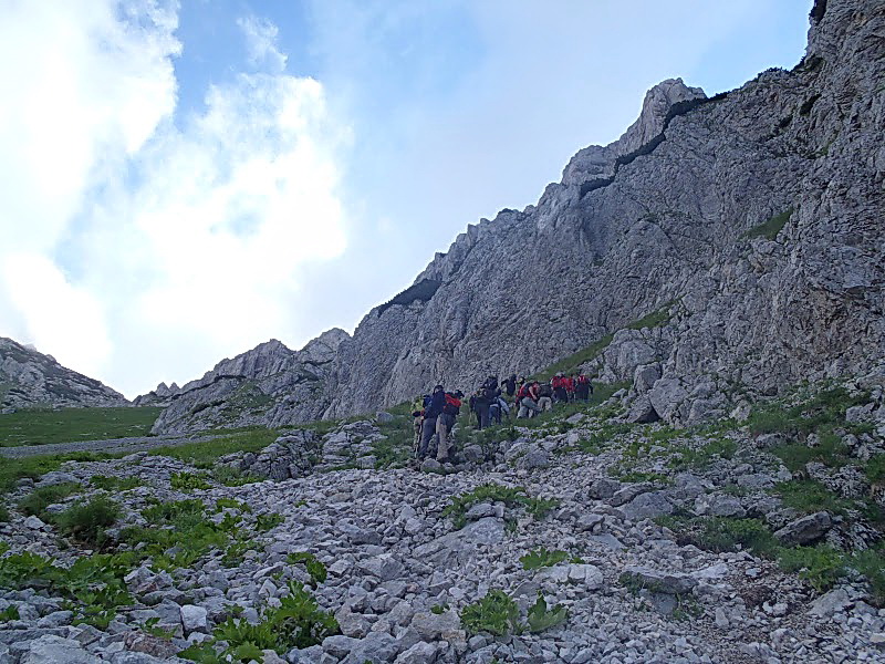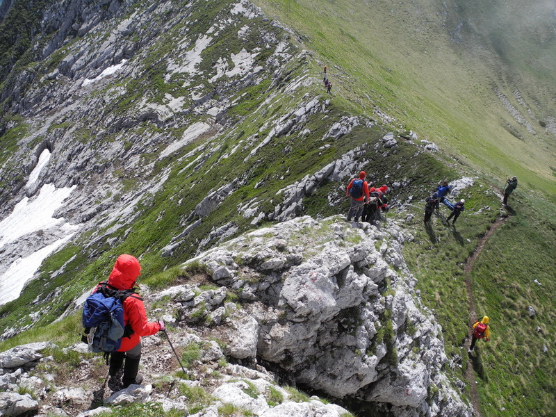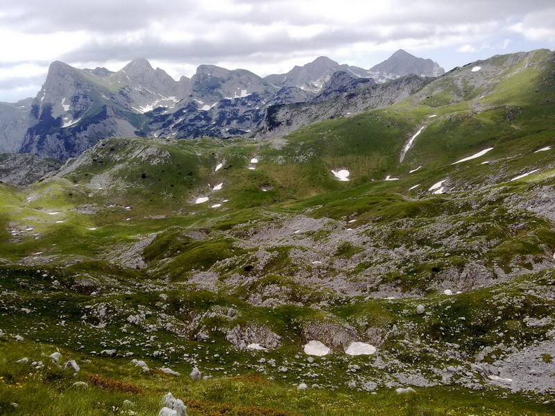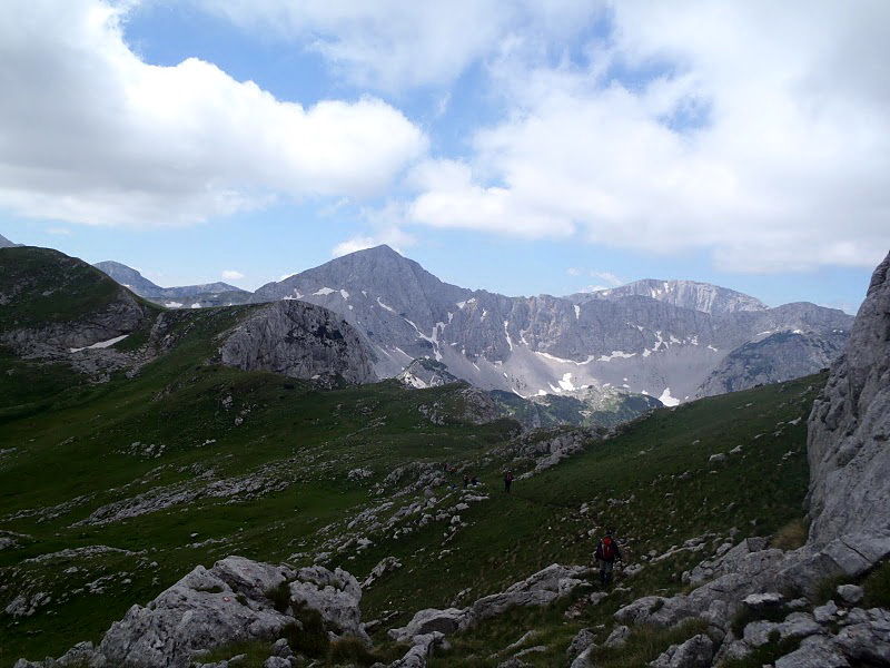 | Staza dalje vodi usponom preko sipara, da bi se izašlo na sedlo na 2100 mnv, odakle put dalje vodi grebenom, preko predivnih pašnjaka i visova. | . |