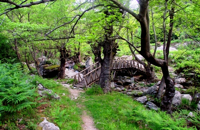 Preko reke su urađeni mostići a na padinama drvena ograda. Ova staza vodi do jedne pećine iz koje izvire reka uz koju smo išli. | ||