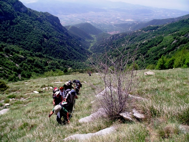 Dužina ture je bila oko 19km, uspona oko 1700m, vreme trajanja 10 sati, broj učesnika 13. 05.05. BELASICA. Rano ujutro smo krenuli iz Orfanija i preko Seresa došli do sela Neon Petricion na južnom podnožju planine. Uzanim putem smo se popeli do brda Beli Kamen-1339m. Odatle smo bili planirali uspon na planinu. Međutim na tom mestu se nalaze vojni objekti i verovatno neka baza pa su nas odmah zaustavili stražari. |