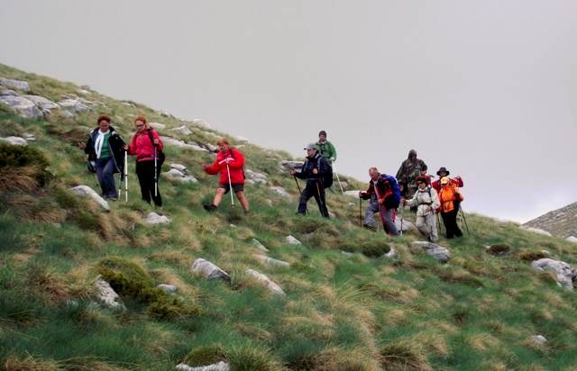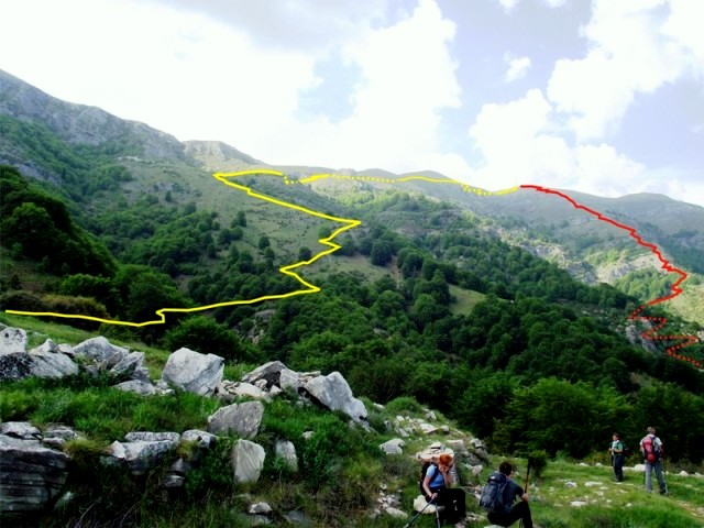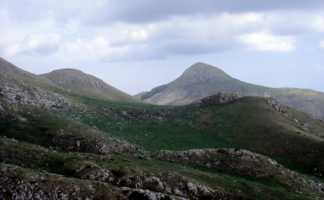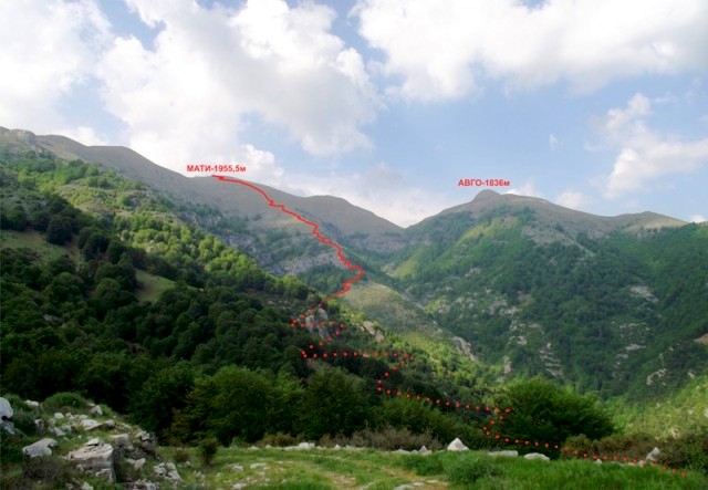Dalje staza vodi na drugu stranu doline ali mi smo nastavili da se penjemo prvo direktno uz kameniti strmi greben a kasnije travnatim grebenom sve do glavnog vrha Mati-1955,6m. Vratili smo se u selo drugom zapadnijom stazom. |