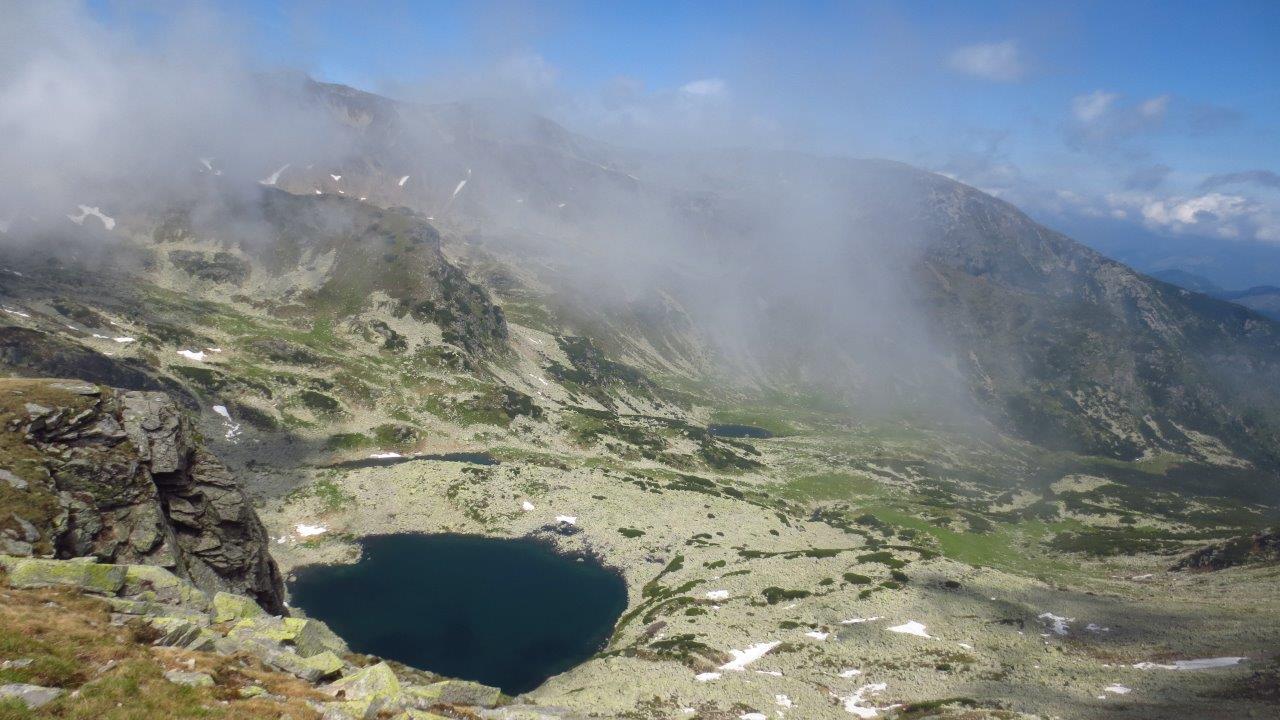 “Ovde kao da je vreme stalo”, neko reče, komentarišući slike iz Picasa albuma. I zaista. Daleko, daleko od civilizacije, potpuno izmešteni u ta prostrana karpatska bespuća, prosto smo lebdeli između neba i zemlje, dok su se beli, uzbudljivi, pufnasti oblaci kovitlali iznad naših glava i činilo nam se da ih možemo dotaknuti rukom. Gledajući upravo te slike, moja prijateljica je prokomentarisala: “Prvi put sam vam zavidela… Najviše zbog tih oblaka … koji su vam bili tako blizu… Da ih dotaknete…” A onda nam se sa grebena pokazalo i prelepo jezero Rosille, u samom podnožju najvišeg vrha ovog masiva, koji je i dalje bio u magli.