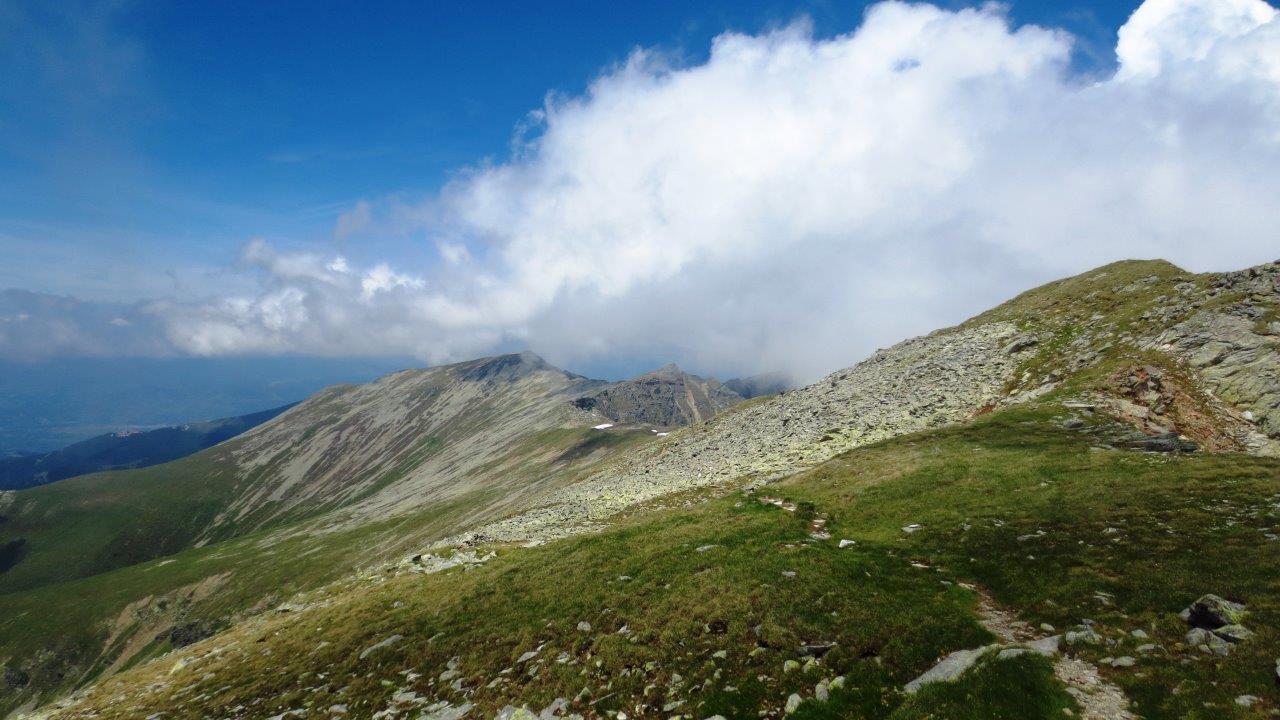 Nastavili smo dalje. Drugi deo grebena pojavio se ispred nas. Kako su sati odmicali i kako smo za nijansu gubili visinu, tako je vreme postajalo sve lepše. Bilo je toplo, sa mnogo više sunca, dok su beli oblaci ostajali iza nas… Sa desne strane grebena, videli smo još nekoliko lepih jezera – Lacul Verde (Zeleno jezero), Lacul Carja (jezero Krža), a ispred nas se pojavio i istoimeni vrh, na koji smo se peli u martu 2007. godine, po snegu, magli, vetru… Te nedelje, blještao je u svojoj lepoti. |