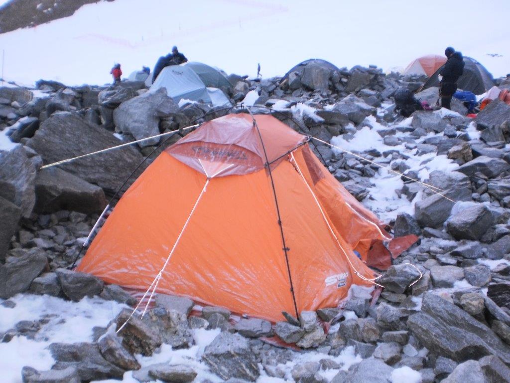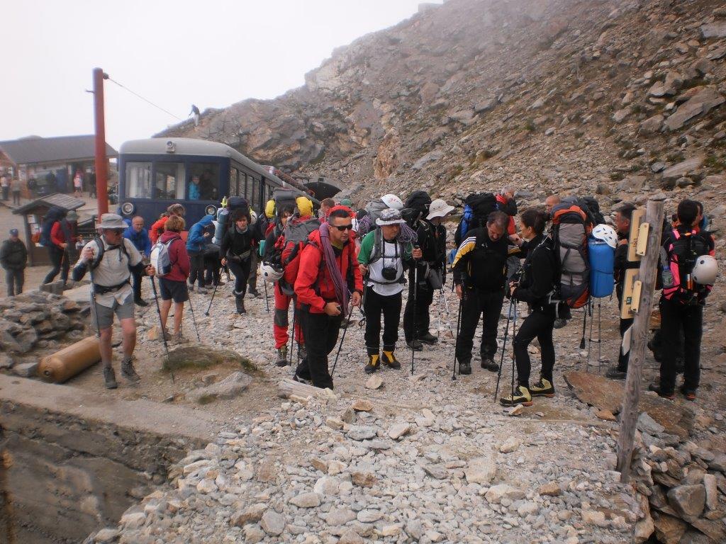 Put prolazi bez problema, tako da na početnu stanicu gondola, u mestu Les Houches, stižemo u 11h pre podne. Gondola nas nosi do Bellevue-a (1794 m), odakle nastavljamo vozićem do L Nid d’ Aigle (2372 m). U 1230 započinjemo uspon, sa sobom noseći i šatore u kojima nameravamo da prespavamo noć pored planinarskog doma Tete Rousse za koji nismo uspeli izvršiti rezervaciju. Iz magle povremeno provire planinski vrhovi iznad nas. Nakon tri i po sata tehnički lakog uspona, stižemo do doma. Ostatak dana prolazi u postavljanju šatora, druženju i pravljenju planova za sutrašnji dan. Nikola Škerović odustaje od daljeg uspona zbog problema sa obućom. Dogovaramo se da sutra idemo svi zajedno do planinarskog doma Du Gouter, u kome će prespavati šestoro planinara. Šest planinara koji budu najbolje podnosili visinu nastaviće do skloništa Vallot, na 4362 metra visine.