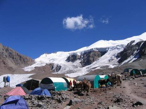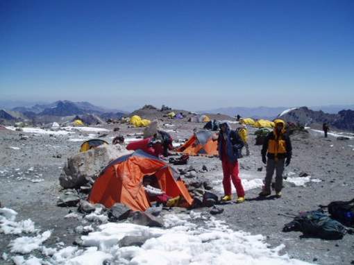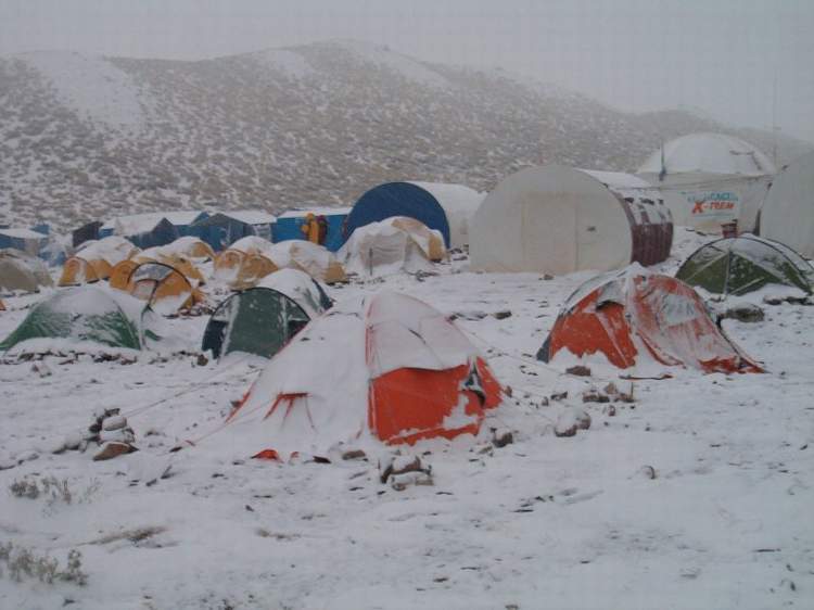 U baznom logoru sam izbrojao oko 80 šatora. Danas i juče je temperatura na visini logora Nido de Condores (5434m), padala ispod –40° C. Usponi na vrh su bili nemogući i zabranjeni. Iznad baznog logora, kasnije smo saznali, bili su samo planinari iz Novog Pazara. Nakon oskudne večere u organizaciji agencije Lanko, otišli smo na spavanje.
