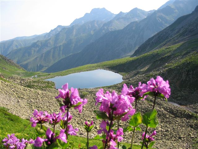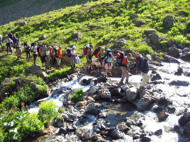Vreme izvanredno. A sad put pod noge sa teškim rančevima. Svuda naokolo potoci, zelene i cvetne livade. Krećemo se jedva primetnom nemarkiranom stazom. Bez vodiča je skoro nemoguće planinariti Kačkar planinom.