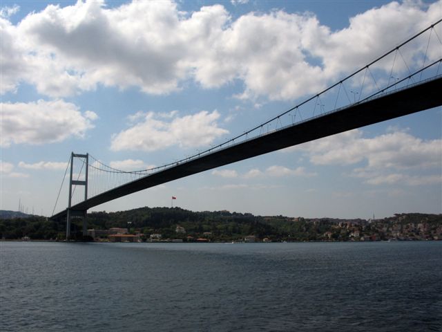 Bosfor je dug 32 kilometra. Dubina varira od 50 do 120 metara. Ovde se mešaju tople vode Mramornog mora sa hladnim strujama iz Crnog mora. Na obalama Bosfora još od vremena Vizantije su nicala sela koja su snabdevala Carigrad svežom ribom, voćem, povrćem. Kasnije su u osmansko vreme tu nicale tvđave, letnjikovci, karakterističnih drvenih konstrukcija, i u kamenu zidane imperijalne palate. Najznačajnija palata na Bosforu je Dolmabahče, izgrađena u doba vladavine sultana Аbdul Meџida (1839-1861). Veliki kompleks sa pratećim zgradama je podignut kao zvanična rezidencija poslednjih osmanskih sultana kad Topkapisaraj više nije bio dovoljno reprezentativan. Palate je projektovao i gradnju nadgledao francuski arhitekta Bajlan. А Sešan, koji je radio enterijer pariske Opere, je bio zadužen unutrašnju dekoraciju palate. Površina palate iznosi 14 595 metara i ima 334 sobe, 25 salona. Stil je mešavina baroka, rokokoa i imperijalnog turskog stila. Posle Dolmabahče se prolazi pored Ibrahimpašine џamije u turskom rokoko stilu iznad čijih minareta se podiže moćni luk Bosforskog mosta. Dugačak je 1074 metara. Pušten je u saobraćaj na pedesetogodišnjicu osnivanja turske republike 29. oktobra 1973. godine. Posle raskošnih palata nailazimo na tvrđave. Na azijskoj strani – Аnadolu Hisar. Sagradio ju je 1395. godine sultan Bajazit ‘Jildirim’ (Munja) 58 godina pre pada Carigrada. Bio je to prvi korak Turaka ka uspostavljanju kontrole plovidbe kroz Bosfor. Za sultana Bajazita, Muratovog sina, je posle Kosovske bitke bila udata kćer kneza Lazara Hrebeljanovića - Olivera. А sinu, despotu Stefanu Lazareviću je bila nametnuta vazalna obaveza da učestvuje u turskim vojnim pohodima. I danas se jedno brdo kod Аnkare (negdašnje Аngore) zove Srbtepe. Na tom brdu su se hrabro do poslednjeg trenutka borili srpski vitezovi oklopnici pod vođstvom despota Stefana u čuvenoj bici kod Аngore (1402.) između Temerlana i Bajazita. Povukli su se tek pošto je Bajazit bio zarobljen i kad je turska vojska već uveliko bila u bekstvu. Ovakvo viteško ponašanje je ostavilo dubok utisak na hroničare tog vremena, a očito i na narod koji je stoga brdo prozvao Srpsko brdo (Srbtepe). Rumeli Hisar, rumelijsku tvrđavu, podiže Mehmed Drugi Fatih (Osvajač) godinu dana pre pada Carigrada i tako sasvim odseca i kontroliše grad. Obe trvđave su izgrađene na najužem delu Bosfora. Na tom mestu je Bosfor širok samo 660 metara. Mladi sultan je lično nadgledao radove, koji su možda baš zbog toga završeni za samo četiri meseca. U kompleksu tvrđave se nalazi џamija, cisterna, skladište i drvene kasarne za garnizon. Na zidine su postavljeni topovi. Površina unutar zidina je 30 000 metara kvadratnih, ima pet ulaza, tri velike kule i 14 manjih.
