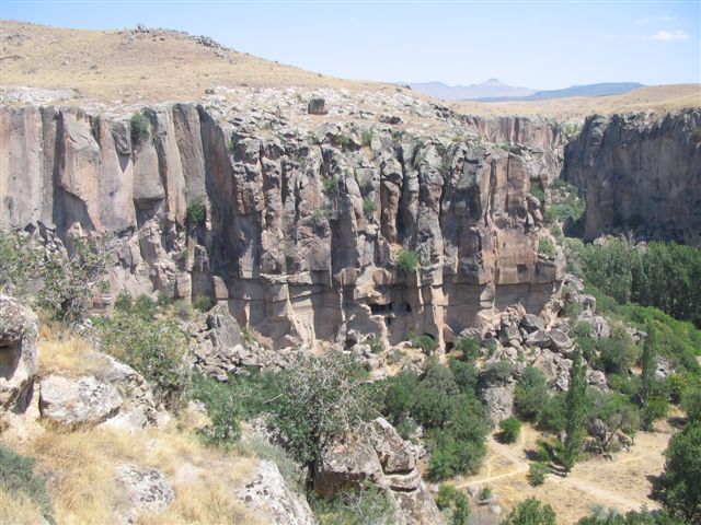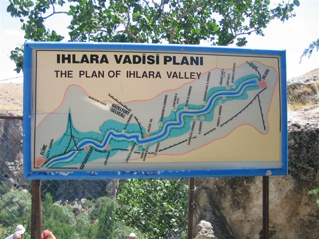 Kad smo iz podzemlja izašli na svetlo dana, krenuli smo u pravcu doline Ihlara. Reka Potamus Kapadokus ili Kapadohijska reka je kroz bazalt i andezit prosekla kanjon dužine 14 kilometara i dubine do 150 metara na svom putu ka velikim Slanim jezerima – Tuz Golu. Napuštene crkve se nalaze na obema obalama reke koja se danas zove Melendiz. Srećom, bilo je leto, i reka je zbog niskog vodostaja ličila na potok te smo je lako prelazili. Preko 150 pećinskih crkava i nekoliko manastira sa manje ili više očuvanim freskama se nalazi u dolini. Većinu pećinskih crkava su trajno uništili što ljudi što vreme, pa nisu bezbedne za obilazak!