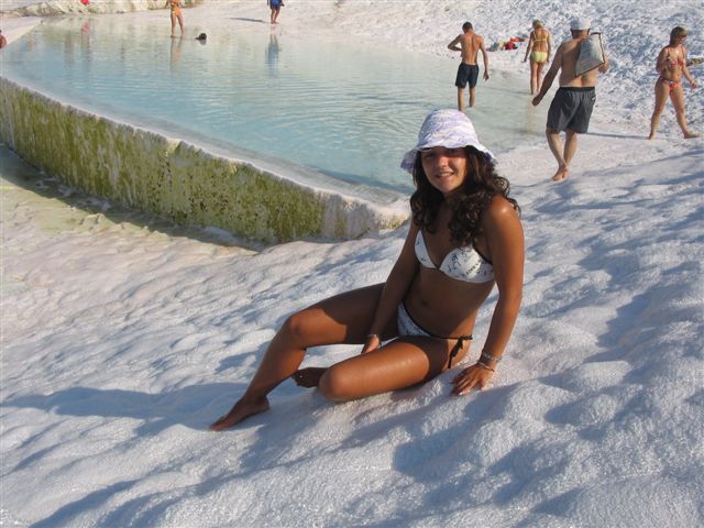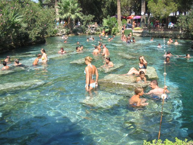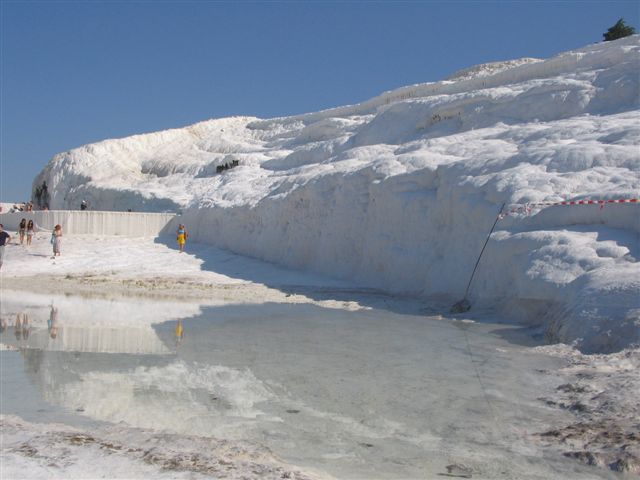 Sa obala Sredozemnog mora krenuli smo u kopno ka Denizliju, antičkoj Laodikeji. Na dvadesetak kilometara od Denizlija se izdiže jedinstvena geološka formacija, Pamukkale – Tvrđava od pamuka. Okamenjeni vodopad stalaktita iz daljine zaista podseća na belu tvrđavu. Hiljadama godina kalcijumovim solima bogati termalni izvori formiraju čudesne oblike preko kojih se kaskadno sliva voda.