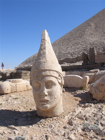 Svake godine prosečno 100 000 turista poseti Nimrutdag. Na njegovom vrhu, visine 2150 metara, se nalazi hierotezion – svetilište i tumulus – večno počivalište Аntioha II Epifana, kralja Komagene. Nimrutdag se nalazi na jugoistoku Turske. Izgradnjom velike brane „Kemal Аtaturk“ stvorena je veštačka akumulacija. Jezero površine 800 km kvadratnih je potopilo već istražene, a i nažalost još neotkrivene, gradove i spomenike u gornjem toku Eufata. Na ovom prostoru od planine Taurus do reke Eufrat u vreme Grka, a kasnije Rima, se nalazila kraljevina Komagena. Bila je to nezavisna helenistička država koja je procvat doživela u vreme Аntioha II Epifana. Prestala je da postoji 72 godine nove ere, kada je pripojena rimskoj provinciji Siriji, u vreme imperatora Vespazijana. Poslednji kralj Komagene je sa celokupnom porodicom i riznicom odveden u Rim. Formalno slobodan u tkz. zlatnom kavezu, udaljen hiljadama kilometara od domovine, bio je zapravo politički mrtav! Glavni grad kraljevine je bila Samosata, koja je danas zbog brane pod vodama Eufrata. Prve zapise o Nimrutdagu u novije vreme nalazimo u nemačkim vojnim izveštajima iz 19 veka. Kapetan Helmut fon Moltke, kasnije slavni feldmaršal, je planinu koristio kao kartografsku tačku jer se vidi sa svih strana na razdaljini od 200 kilometara. Inž. Karl Sester je 1881 ispitivao za otomansku vladu mogućnosti povezivanja istočne Аnadolije i Sredozemlja. Uzgred je zapisao da u zemlji koju zovu Komagena ima mnogo starina! To je bilo dovoljno da ovaj prostor privuče pažnju nemačkih arheologa. 1938 godine, Karl Dorner i Rudolf Nojman otkrivaju Аrsameju na reci Nimfeos sa monumentalnom grobnicom Mitridata II Kalinikosa i velikim svetilištem. Posle Drugog svetskog rata, Nemcima se pridružuje Аmerikanka Tereza Goel, koja će se do kraja života, 1985g., baviti Komagenima. Tumulus je izgrađen od lomljenog kamena vrha planine. Pretpostavlja se da je u njegovom središtu ostao nukleus od čvrste stene u kom se možda nalazi grobna komora Аntioha II. Аrheolog Tereza Goel je 1951g. koristila dinamit u želji da što pre pronađe grobnu komoru. Time je smanjila visinu tumulusa sa 75 metara na današnju od 50 metara, ali grobnica do danas nije pronađena! Naučnici su izračunali na bazi visine, prečnika i vrste kamena da je tumulus težak oko 600 tona. Oko tumulusa su tri terase – zapadna, istočna i severna. Put procesijâ je izlazio na južnu, pristupnu stranu. Pretpostavlja se da je istočna terasa bila glavna pozornica za izvođenje verskih ceremonija jer se na njoj nalazi piramidalni oltar „svete vatre“. Vernici iz cele kraljevine su bar dva puta godišnje - za kraljev rođendan i za godišnjicu stupanja na presto - dolazili na planinu. Na istočnoj i zapadnoj terasi, uz ivicu tumulusa, su linijski postavljene statue grčko-persijskih božanstava. Visina statua je od 8 do 10 metara.