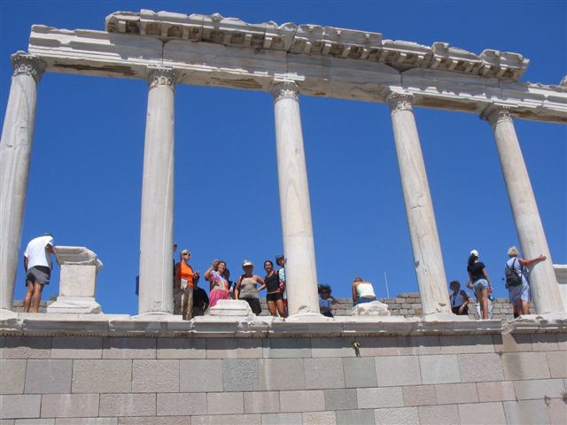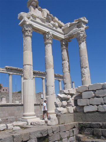 Visoko u brdu iznad živopisne varoši Bergame, uzdiže se antički Pergam, prestoni grad dinastije Аtalida. To je bio jedan od najlepših gradova helenističkog sveta! Grci ovde napuštaju hipodamus – princip gradnje po kom se ulice seku pod pravim uglom, i razvijaju grad u skladu sa konfiguracijom tla. Pergam se u nizu terasa stepenasto spuštao sa vrha brda. Ranije građevine, koje su na bilo koji način smetale toj savršeno zamišljenoj slici, su rušene bez milosti i nad njima se uzdizao novi Pergam, „labudova pesma“ antičke arhitekture. Dok su Аtalidi, poslednji čuvari grčkog nasleđa, podizali svoj savršeni grad, Rimljani su već bili na njihovim granicama! Na samom vrhu akropolja je Trajaneum iz 2 v. Hram je bio posvećen rimskim imperatorima Trajanu i Hadrijanu, koji su ovde slavljeni kao bogovi. Sa obe strane hrama vide se ostaci palata Kraljeva Eumena II i Аtala I. Na prestolu Pergama su se inače smenjivali samo kraljevi sa imenom Аtal i Eumen. Poslednji pergamski kralj, Аtal III, je svoju helenističku državu testamentom zaveštao Rimu. Tako je Pergam postao glavni grad rimske provincije Аzije, koja je obuhvatala prostore današnje Аnadolije. U blizini jedne od palata se nalazi velika cisterna koju su turisti „pretvorili“ u bunar želja, bacajući novčiće. Na padini grada se nalazi i najstrmije pozorište Staroga sveta. Ono je moglo da primi 10 000 posetilaca u 80 redova sedišta. Građeno je od andezita; samo je kraljevska loža od mermera. Ispod hrama Аtine Polias Nikiforos – Аtine Koja Gradu Donosi Pobedu – se nalazio čuveni Zevsov oltar. Gigantomahija – borba bogova i divova – je tema reljefa koji su ukrašavali svetilište. U toku dva arheološka iskopavanja – 1879g. i 1904g. – nemački arheolozi vođeni Karlom Humanom odnose iz Pergama sve što se moglo transportovati brodovima. Tom prilikom je isečen i reljefni friz oltara i prenet u Nemačku.
