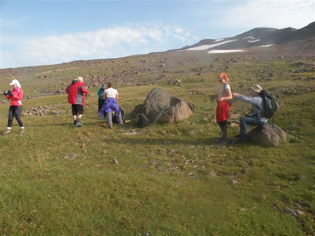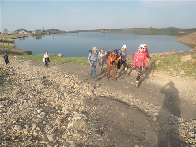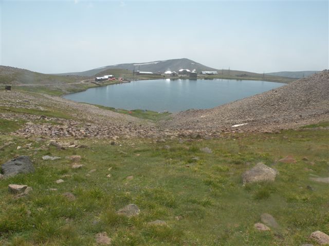 | Jermenija je zemlja zakavkazja okružena Malom Azijom, Iranskim platoom, Kavkazom i Crnim morem. Površina Jermenije je 29 888Km2 sa oko 4 000 000 stanovnika najviše pravoslavne vere. Glavni grad je Jerevan sa 1 100 000 stanovnika. Postala je prva zemlja na svetu koja je proglasila hrišćansvo državnom religijom. Danas zauzima deseti deo istorijske teritorije. Najviši vrh Jermenije je Aragac(4090m) na istoimenoj planini. Na uspon smo krenuli iz Jerevana ka Ašteriku pa severno ka Aragecu malom gradiću u podnožju planine. Zbunili smo mešiane našim ranim dolaskom sa ogromnim autobusom. Ljubazni Jermeni su brzo shvatili da želimo na planinu i odmah nam predložiše prevozna sredstva. Pala je pogodba i sa pet automobila, prastare ruske proizvodnje, krenuli smoka jezeru Kari koje se nalazi na 3200m. Na početku je put asfaltni pa izlokani makadam. Verovatno boljim kolima i nije moguće doći do jezera. Na obalama jezera se nalazi skromni restoran i na naše iznenađenje institut za fiziku. |