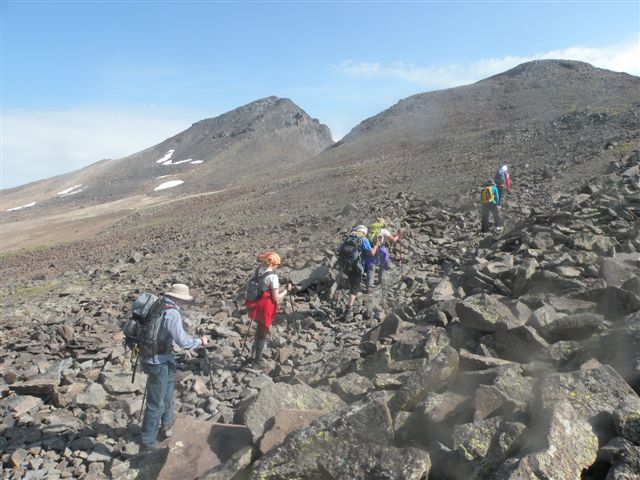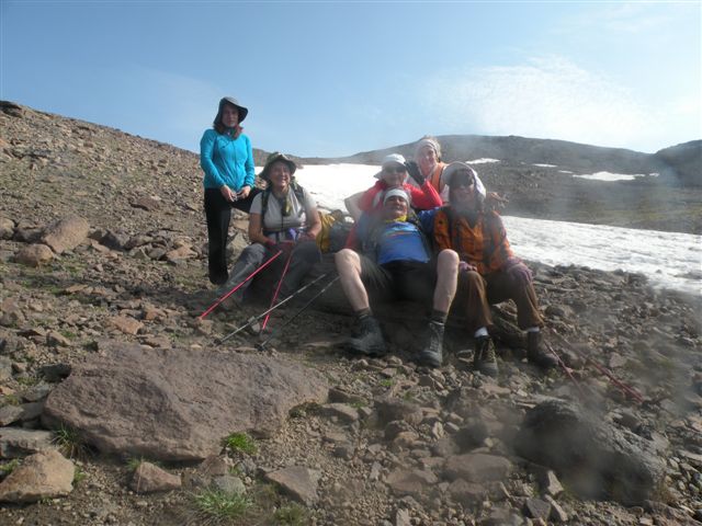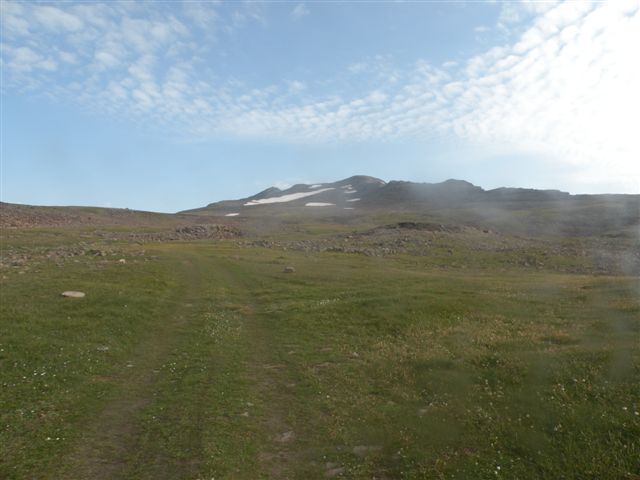 Za nepuna četiri sata izašli smo na Južni vrh planine Aragec (3879m). Pogled na vulkansko grotlo nekadašnjeg vulkana i vrhove na njegovom obodu. Severni vrh je najviši i najdalji. Zapadni vrh Aragaca je 4080m, a južni 3910m. |