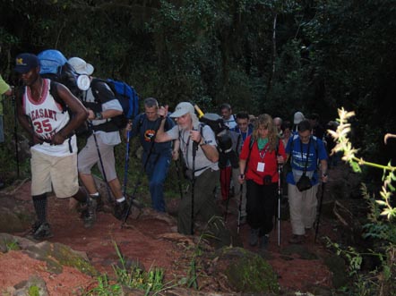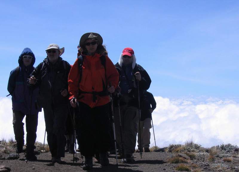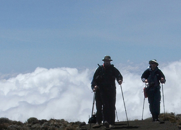 Hut-u. Veoma sporim hodom, uživajući u prelepom pogledu na Kibo,