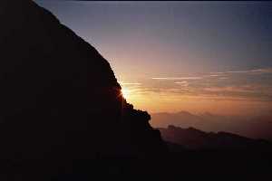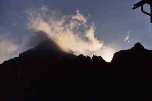 19:00: Krećemo ka Vršiču. U 20:00 stižemo na prevoj. Iz autobusa uzimamo stvari i hranu za noć u Tičarjevom domu, sutrašnji celodnevni uspon na Jalovec i silazak do izvora Soče. Sve se to dešava na parkingu u blizini Doma. Tičarjev dom 1625m. Divan smeštaj. Kupatilo i uredan mokri čvor. Večeramo na terasi. U Domu je sa slavine voda za piće, a može i da se kupi. Tek da se stekne navika. Nebo, kroz mrklu noć, cepaju vatrene strele - sevaju munje i gruvaju gromovi. |