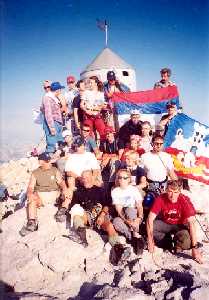 | 08:00: Na Triglavu (2864m), najvišem vrhu Slovenije, je 47 planinara iz Srbije. Fotografisanje za uspomenu. |