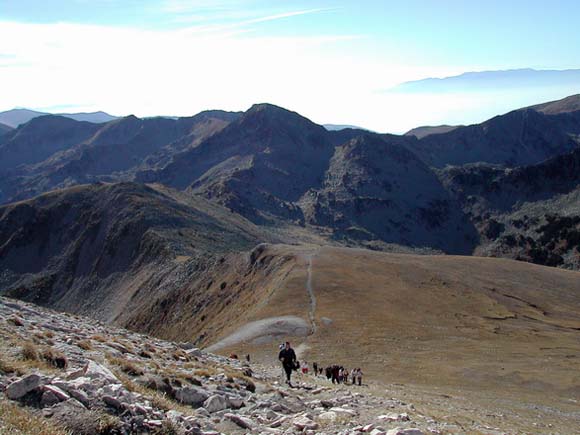 U organizovanoj koloni, po lepom jutarnjem vremenu, krenulo je četrdeset planinara na uspon. Markiranom strmom stazom se probijamo kroz zakžljale borove i izlazimo na plato gde je prva pauza.Tek nas je obasjalo prvo jutarnje sunce na visini od 2150m. Izvanredan pogled na susedni greben Siljegarnik i Todorin Vrh (2746m), dokle dolazi žičara.