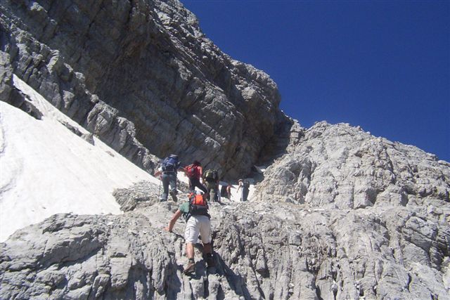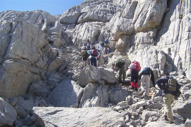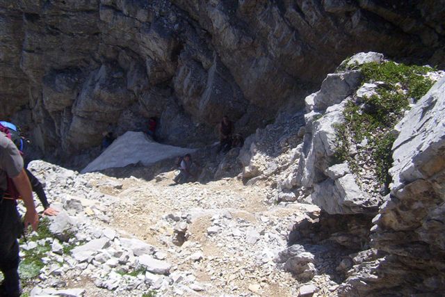 Odatle, staza je bila već znatno teža. Prekrivena sitnim i krupnim siparom, vodila je preko krušljivih stena. |