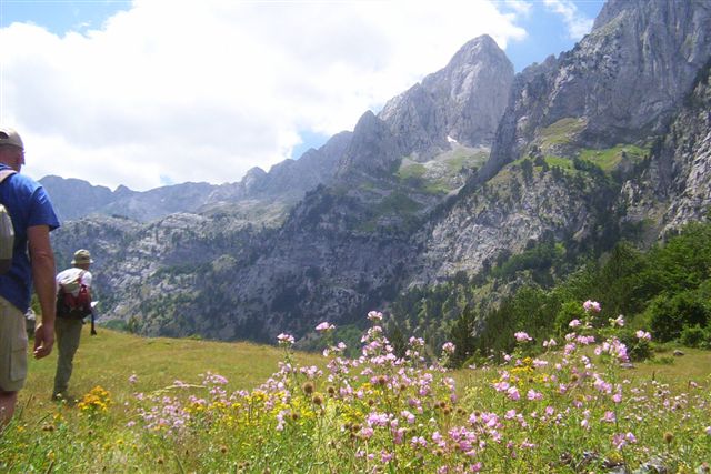 Gledamo...beskrajan kružni horizont, more sačinjeno od mnoštva planinskih lanaca, koji se nadovezuju jedni na druge i zahvaljujući različitim osobinama i različitoj udaljenosti, poprimaju bezbroj nijansi boja. Dok se, na kraju, razlivajući se i odajući osećaj beskrajnosti, ne izgube potpuno na dalekom horizontu. A vrhovi, vrhovi, svuda oko nas, stoje visoki i uzvišeni, izgledaju skoro bestelesno, u isto vreme i blizu i veoma daleko...Vođa ih je nabrajao: Karanfili, Maja Rosit, Maja Kolata, Bogićevica, Bogdaš, Đeravica, a u daljini: Komovi, Bjelasica, Visitor, Šar planina...Ispred nas se pruža i divna, zelena dolina Valbone...