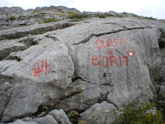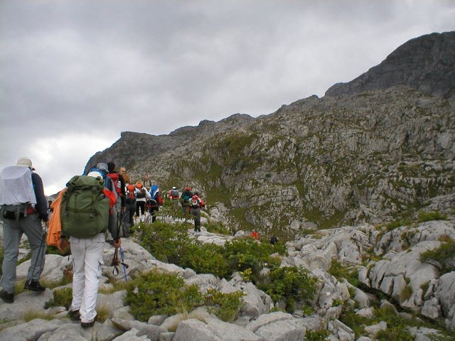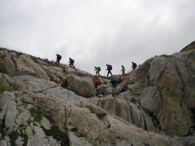 | Ulazimo u kraški predeo, stenovit, sa puno škrapa, pukotina, uvala, sa malim kuluarima, nepravilnim preprekama na stazi, koje nas dosta usporavaju. | ![]() |