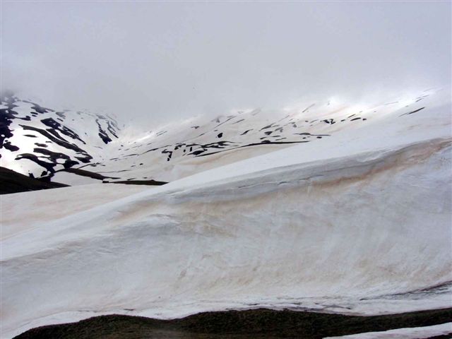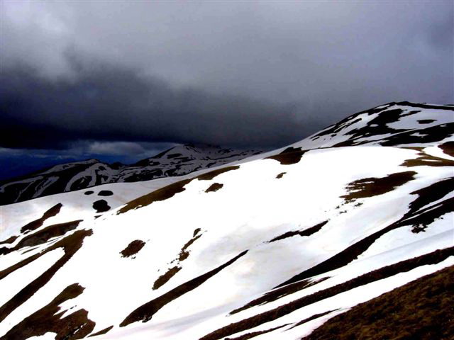 u Albaniju skrećemo desno uz snežnu padinu sa retkom i kržljavom bukovom šumom izlomljenom