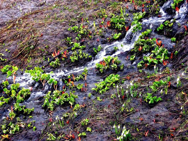 silazak niz snežnu padinu sa prokopnelim delovima sa dosta potoka i
