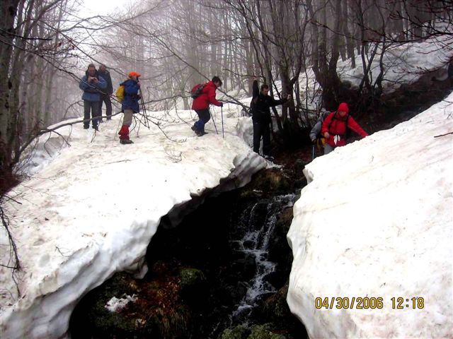 pokrivena snegom. Često prelazimo bočne potoke sa povisokim snežnim zidovima na