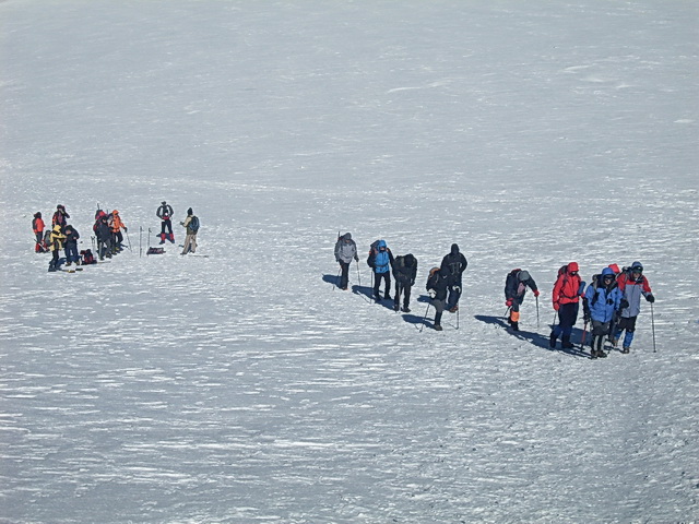 Krećemo natrag, oprezno, bez euforije, spuštanje je uvek teže od uspona...sad već mogu da slikam, pravimo pauzu za doručak, svi smo dobro, vreme je sunčano, vetar jenjava. |