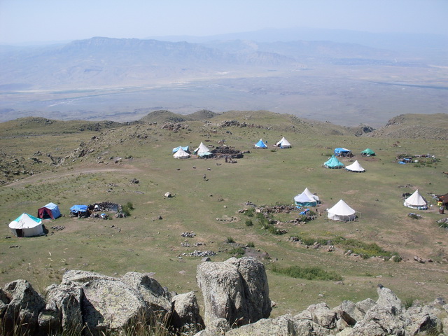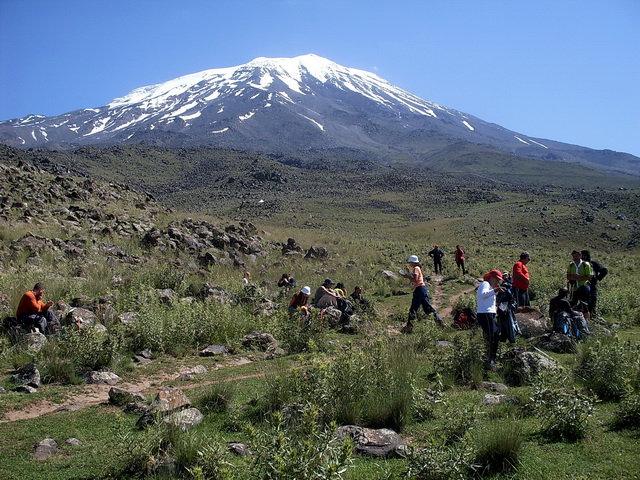 Posle prethodnog dana, a obzirom da smo rano legli, do 6 ujutru smo svi već ustali. Uglavnom raspoloženi, predivno jutro, planina nas časti lepim fotografijama koje pravimo. Još jedna grupna fotografija za uspomenu...Usput se pakujemo, podižemo kamp, i onda ponovo, veliki rančevi na mazge, mali na leđa, a mi u 8 i 30 krećemo da se spuštamo niz planinu. Bilo je lako i lepo spuštati se. U 11 i 30 smo bili na mestu odakle smo pre tri dana krenuli u planinu, 2137 m, rančevi natovareni na dva kombija, za sat vremena vožnje , u 12 i 30, bili smo ispred hotela u Dogubajazitu. Grupa koja se nije pela na planinu sačekala nas je sa pogačom i solju, kriškama lubenice i naravno ...PIVOM. Do 20 sati smo bili slobodni, tuširanje, prepakivanje, šetnja Dogubajazitom. Gogan i ja smo prvo zaglavili u poslastičarnici,... baklave raznih vrsta, ...slatke da udaraju direktno u mali mozak,... ali prijaju. Naručujemo i pravu tursku kafu bez šećera, objasnismo im... , bila je prava turska...ali, i ona slatka da nisam mogla da je popijem,... a tako je lepo mirisala... |
