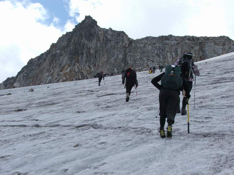 Pošto se penjemo severnom stranom ka vrhu, glečer je čak i u