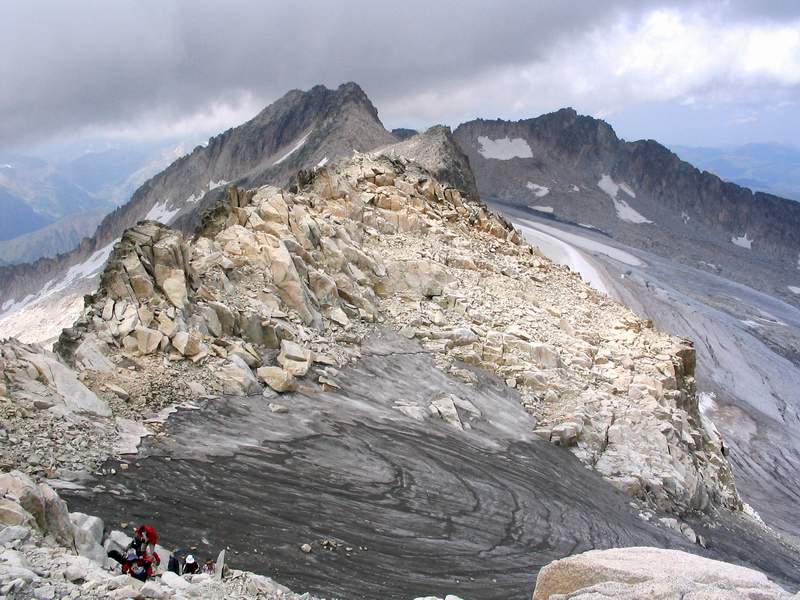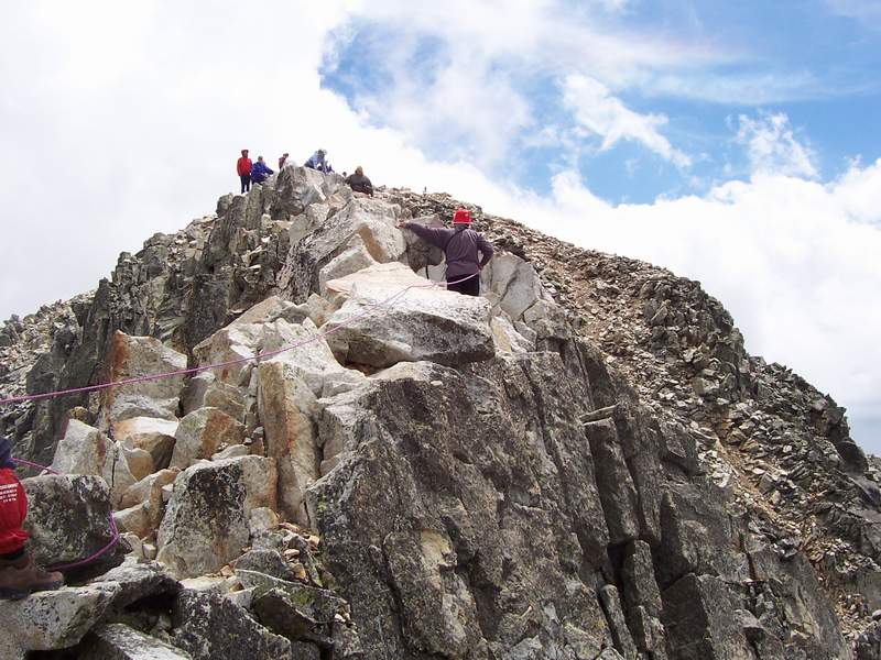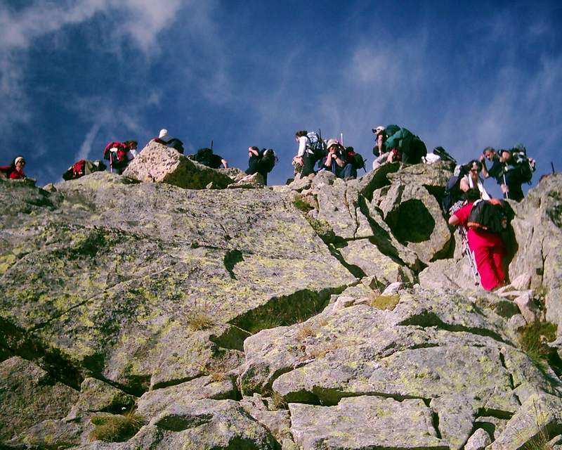 planinari čekaju na red za prelazak. Ovaj greben predstavlja