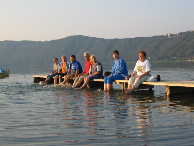 Već od 7 sati mogu se videti „rekreativci“ koji trčkaraju. Naravno i mi smo „rekreativno“ brčkali noge u jezeru, a neki, poput Marije i Marka su čak iskoristili priliku da se kupaju...