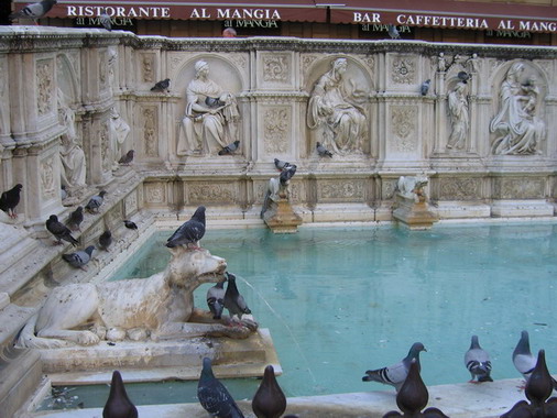 Trg u Sijeni je prelep! Smatra se najlepšim trgom u Italiji, a neki kažu i u Evropi. Nije samo izuzetan po lepoti arhitekture, nego i po atmosferi. Ljudi sede po okolnim kafićima na trgu ili na samom centru trga – na pločniku (nema saobraćaja), pričaju, nešto grickaju, piju i uživaju u lepoti. Svi su opušteni. Naravno i mi smo vrlo brzo postali deo toga i „posedali“ smo na topao pločnik, ne baš predugo, jer je trebalo videti i drugi deo grada...