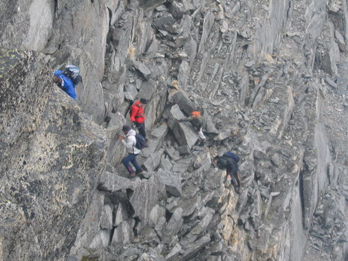 3000m - uspon preko stena sa metalnim i običnim užadima - jako teško mesto, vrlo opasno. Bez obzira što smo u pojasu i osigurani, okliznuti se na ovom delu bi moglo da nanese jako gadne povrede. Vreme nepovoljno: sneg, maglovito, vlažno.