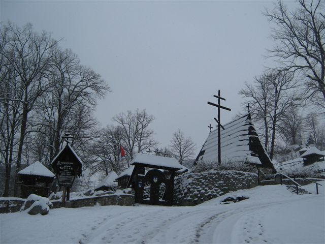 suve hrastovine i dva krsta, drveni zvonik, crkveni dom, tri pećine