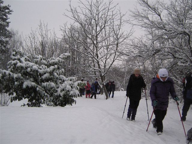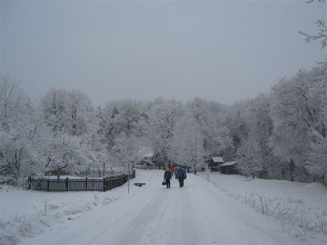 Pozdravili smo se sa domaćinima i predsednikom njihovog planinarskog društva i zahvalili na gostoprimstvu i ljubaznosti. Put nas je vodio opet kroz šumu, preko Široke ravni, vrha Kumovac (593m), pored južne ograde lovišta...I tako, 14 kilometara. Sneg, svojim prelepim „čipkama“ koje je pravio po granama drveća, sve vreme nas je ostavljao bez daha, plavo nebo povremeno se naziralo kroz guste krošnje, a čak je i sunce u nekoliko navrata obasjalo stazu kojom smo hodali. Oko pola 2, stigli smo do manastira Čokešina.