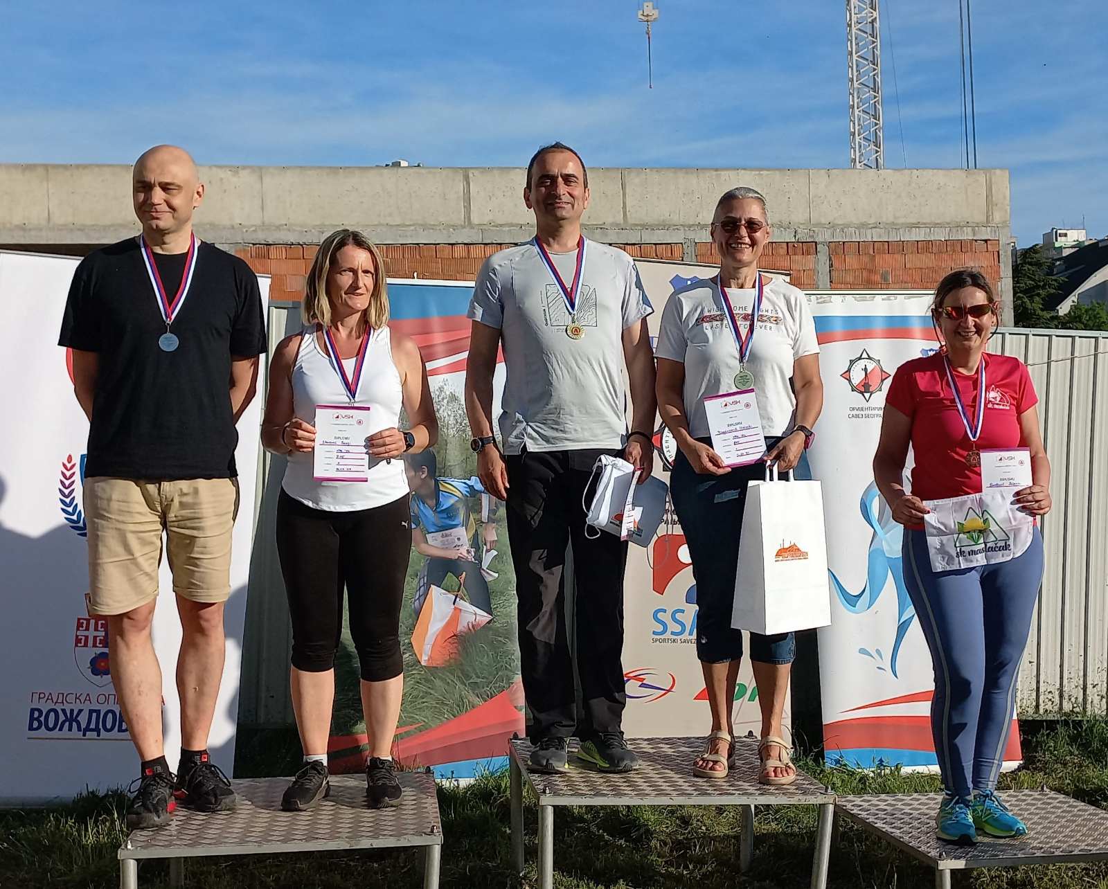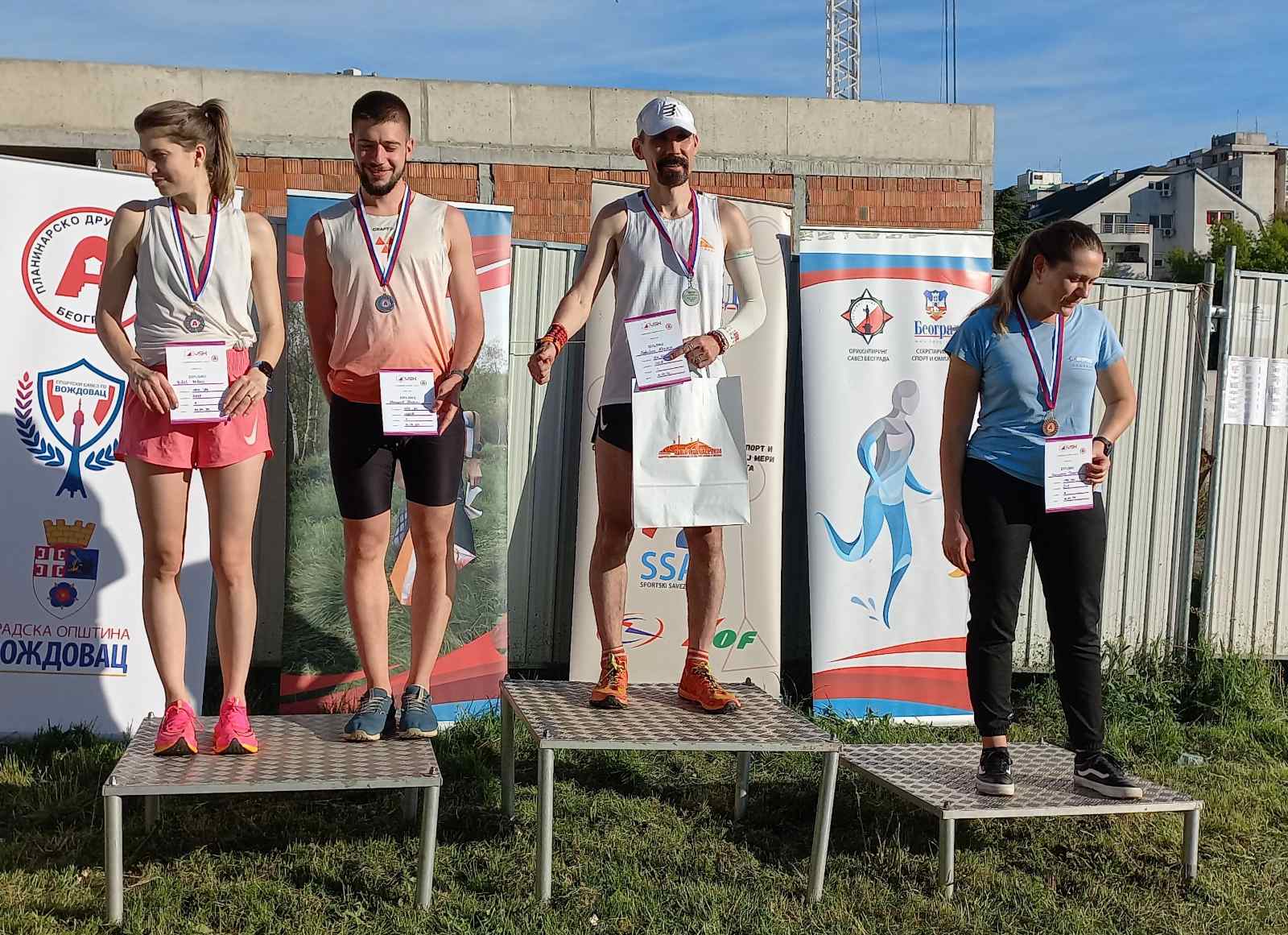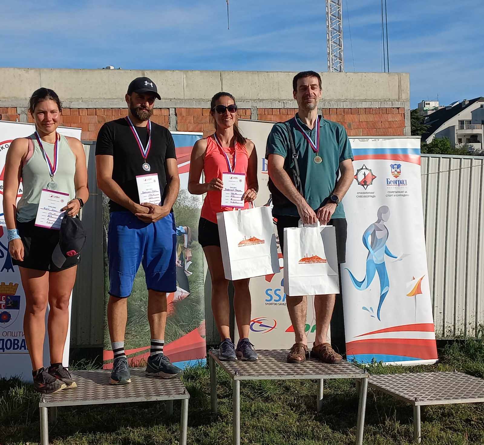 Први дан такмичења одржан је у насељу Браћа Јерковић у Београду. Трка се бодовала за Првенство Србије у спринт штафетама. Трку је успешно завршило 56 штафета од укупно 70 пријављених, из 12 оријентиринг и планинарских спортских клубова док 14 није стартовало. Штафете млађих и старијих пионира, кадета, јуниора, млађих и старијих ветерана биле су двочлане, док су сениорске штафете биле су трочлане. Најбољи су били: Ива Пурић и Филип Танчев, Јањић Софија и Антонио Дамњановић, Сенка Ранковић и Немања Васиљевић, Наталија Татић и Михаило Гламочлија, Ирина Јухас и Дејан Паламаревић, Мирела и Срђан Марковић, а најбоља сениорска штафета из ПСК „Победа“: Душан Марковић, Робин и Дејан Николић.